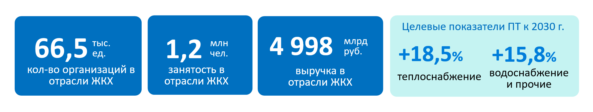 Таким образом, ситуация в сфере ЖКХ требует комплексных мер. Только системный подход позволит обеспечить достижение целевых показателей за счет вовлечения организаций в реализацию проектов, направленных на повышение ПТ, обучения руководителей и специалистов организаций, активного развития системы профессионального образования, развития и внедрения цифровых решений, автоматизации процессов. Это позволит обеспечить устойчивое развитие отрасли, повысить качество услуг, улучшить надежность инфраструктуры, сократить аварийность и в конечном итоге повысить уровень удовлетворенности населения работой жилищно‑коммунального комплекса.