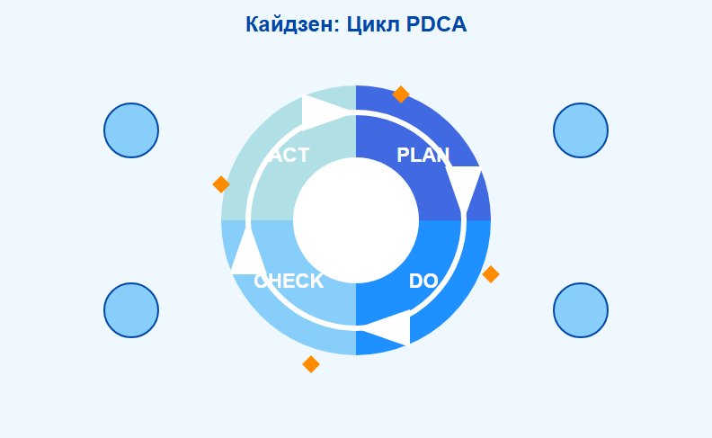 - Цикл PDCA (Plan-Do-Check-Act) — систематический подход к решению проблем