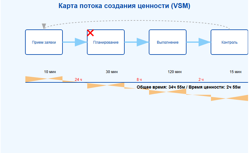 - Карта текущего состояния — визуализация существующего процесса с выявлением потерь